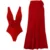 JSN New Trendy Badeanzug Badeanzug mit tiefem V-Ausschnitt Langarm Damen bade bekleidung mit langem Strand rock